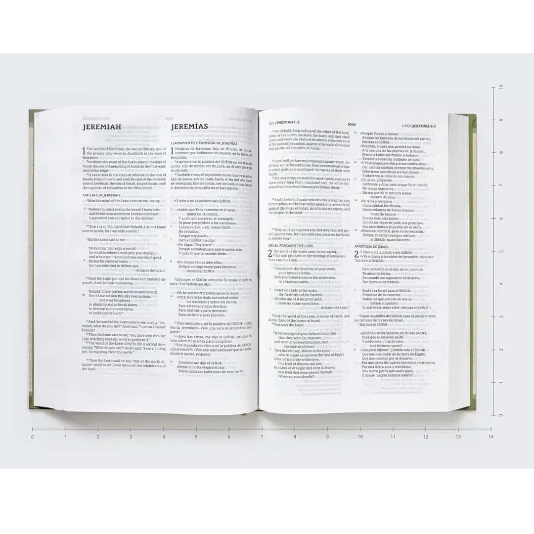 Cada página ofrece dos columnas de Escritura: la NBLA a la izquierda y la ESV a la derecha, permitiendo una comparación fácil y una exploración más profunda de la Palabra de Dios en ambos idiomas. Características: Texto en paralelo: NBLA en español y ESV en inglés para una comparación fluida Traducciones confiables: NBLA por su fidelidad y estilo contemporáneo en español; ESV por su precisión y belleza literaria en inglés Ideal para estudiantes de idiomas y lectores bilingües Diseño claro y accesible para un estudio y navegación sencillos Ideal para quienes desean aprender inglés o español, la ESV/NBLA Biblia Bilingüe facilita el aprendizaje del idioma y enriquece el estudio de la Palabra de Dios.