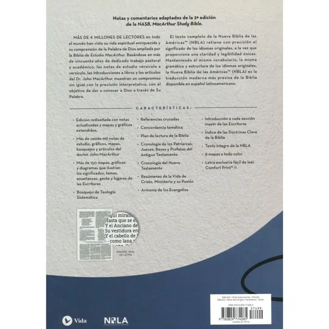 La NBLA Biblia de Estudio MacArthur es ideal para el estudio serio de la Palabra. Dr. John MacArthur reunió en un solo volumen todo su trabajo pastoral y erudición de más de 35 años para crear la Biblia de Estudio más exhaustiva disponible hoy en día. En ninguna otra Biblia de Estudio se puede encontrar una profundidad similar y que explique el contexto histórico, explicando el significado del texto, y expresándolo de manera práctica para la vida del lector.