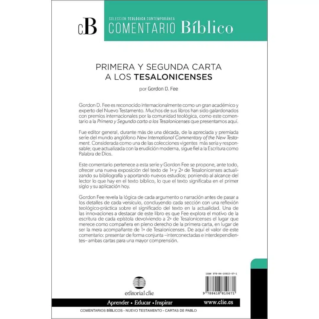En este comentario de 1 y 2 de Tesalonicenses, Gordon Fee se propone ante todo ofrecer una nueva exposición del texto de 1 y 2 Tesalonicenses. Muestra al lector lo que hay en el texto bíblico, lo que el texto significaba en el primer siglo y lo que significa ahora. Fee revela la lógica de cada argumento o narración antes de pasar a los detalles de cada versículo, y concluye cada sección con una reflexión teológico-práctica sobre el significado del texto hoy. Entre otras cosas, Fee explora el motivo de la escritura de cada epístola, devolviendo a 2 Tesalonicenses el lugar que merece como compañera de pleno derecho de la primera carta, en lugar de ser una mera comparsa de 1 Tesalonicenses.