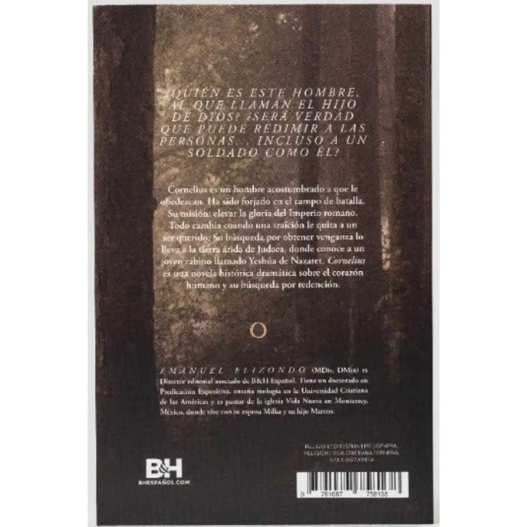 Cornelius es un hombre acostumbrado a que le obedezcan. Ha sido forjado en el campo de batalla. Su misión: elevar la gloria del Imperio romano. Todo cambia cuando una traición le quita a un ser querido. Su búsqueda por obtener venganza lo lleva a la tierra árida de Judea, donde conoce a un joven rabino llamado Yeshua de Nazaret. ¿Quién es este hombre, al que llaman el Hijo de Dios? ¿Será verdad que puede redimir a las personas… incluso a un soldado como él? Cornelius es una novela histórica dramática sobre el corazón humano y su búsqueda por redención.