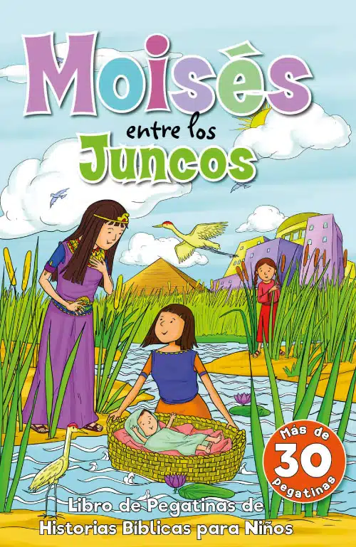 Moisés entre los Juncos, libro de pegatinas de historias bíblicas para niños. Más de 30 stickers. Esta serie incluye horas de entretenimiento bíblico y de mucha diversión para los niños.